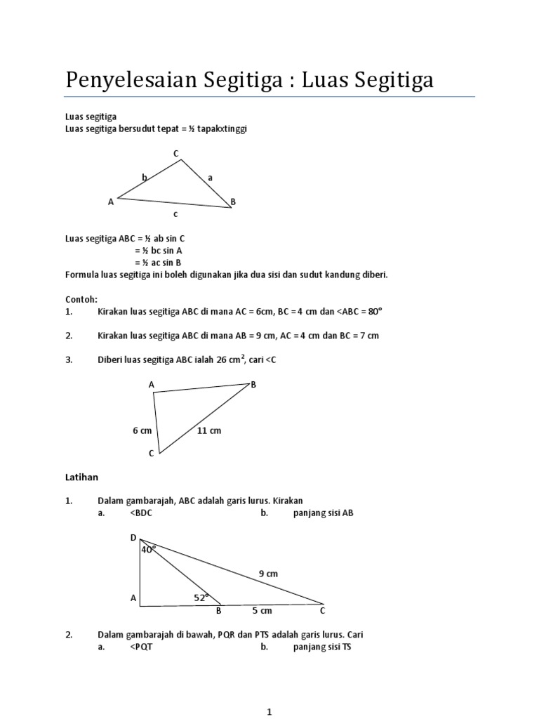 Rumus Heron untuk Luas Daerah Segitiga Bermatematika. Luas ABC ½ x a x t x sin x. Tajuk ini merupakan pakej daripada Sains Teknologi.