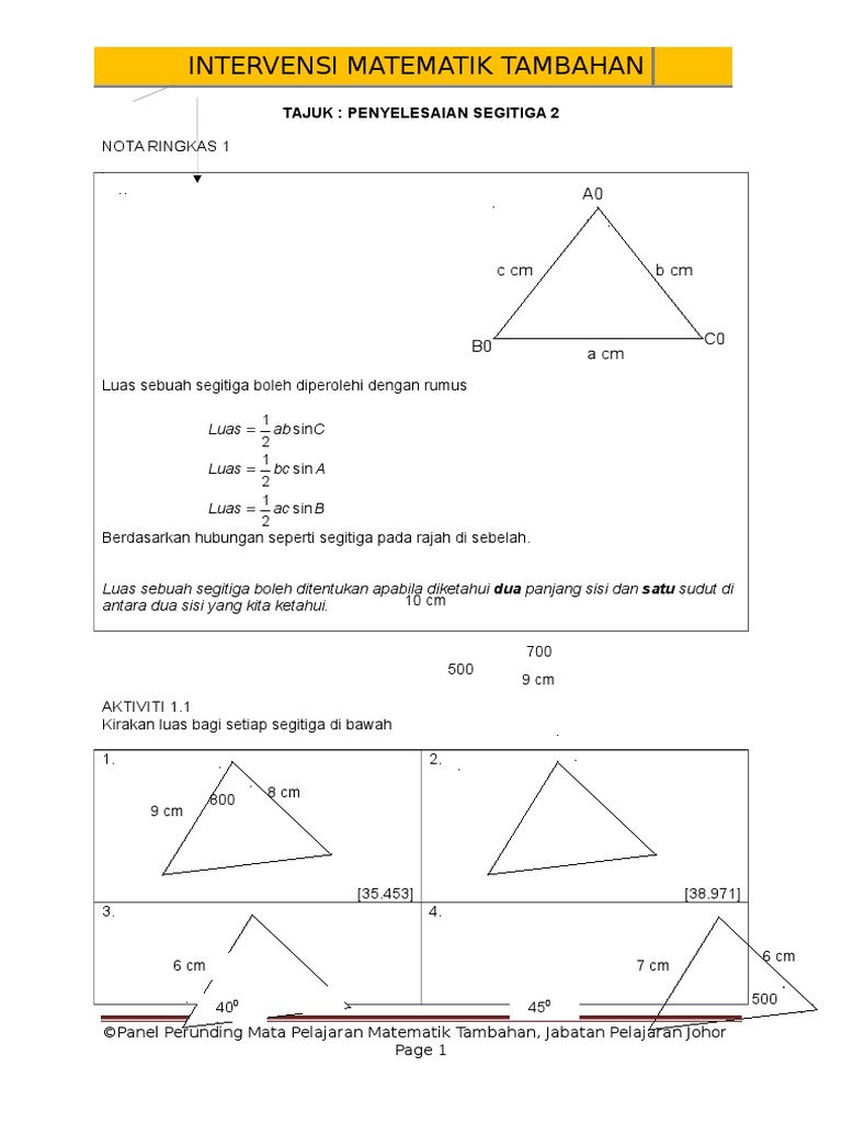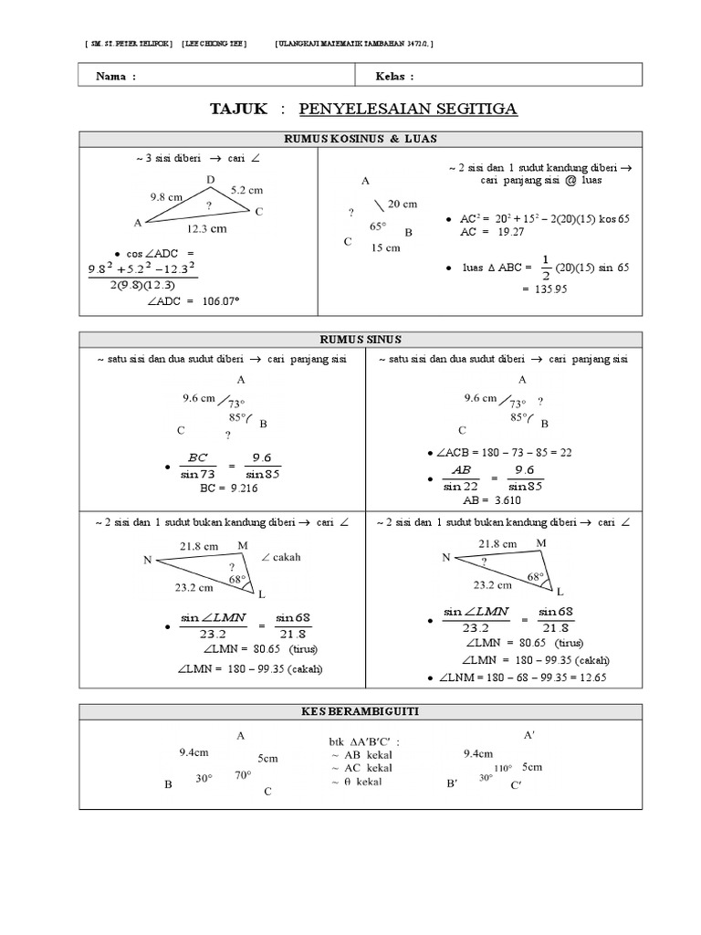 Matematik Tambahan Penyelesaian Segitiga